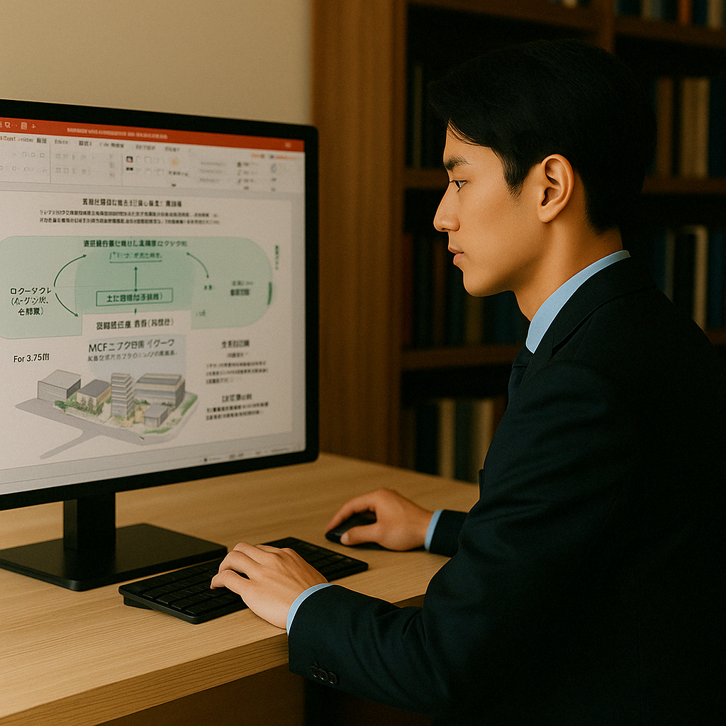 ピッチコンテストや商談でのプレゼンに向けて、伝わる構成と魅せるデザインを両立。聞き手に刺さる「納得感あるスライド」で、あなたの想いをしっかり言語化・視覚化します。